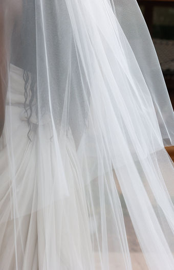 A double layer, circular cut, chapel length and full width veil with a cut edgge.